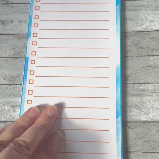 Hand-crafted, large 4" x 10.5" notepad with ample space for many tasks to be recorded and marked off as you accomplish them. Printed on smooth paper that makes writing feel like a dream. Once you've completed a page or decided to flip to the next page, easily tear off the top sheet without any fear of ripping the pages or causing a mess to the rest of the notebook.